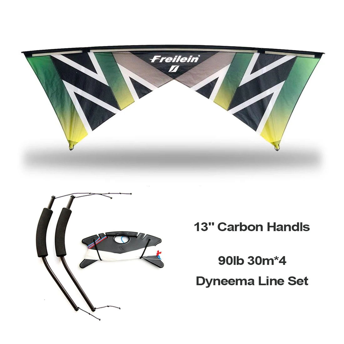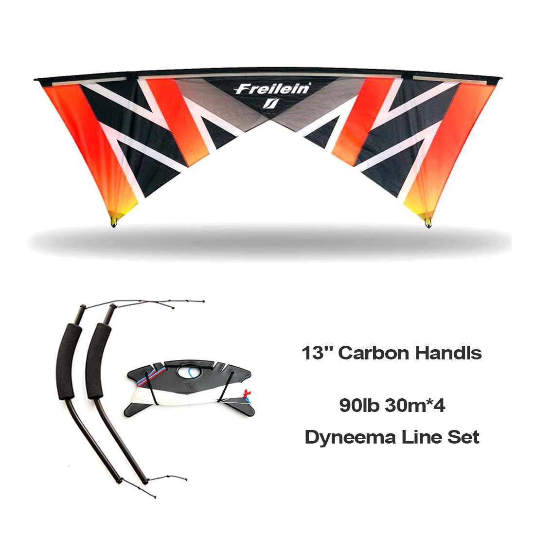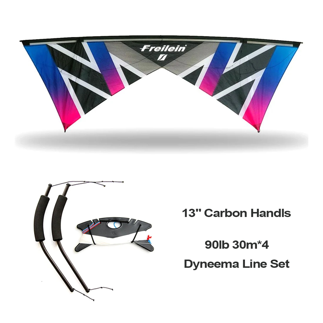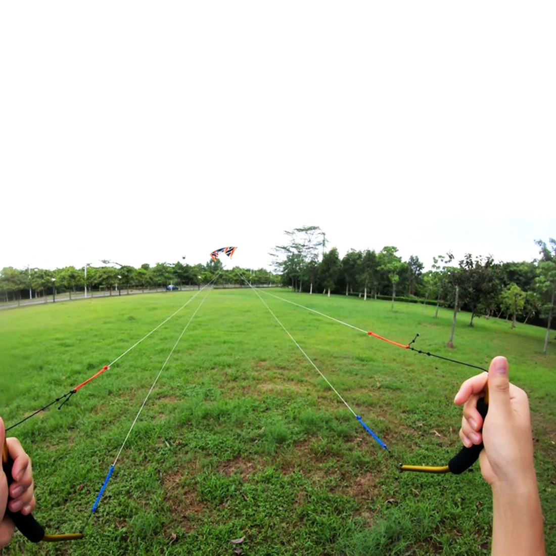 Included in the set are 13-inch handles and four flying lines, each 30 meters long with a breaking strength of 90 pounds. These robust lines ensure you can safely perform aggressive stunts without worrying about line breakage, which is particularly important for beginners gaining confidence as well as for advanced users pushing the kite’s limits. The longer lines also give you more room to maneuver the kite in open spaces, enhancing your ability to perform complex sequences and maintain control at various altitudes.